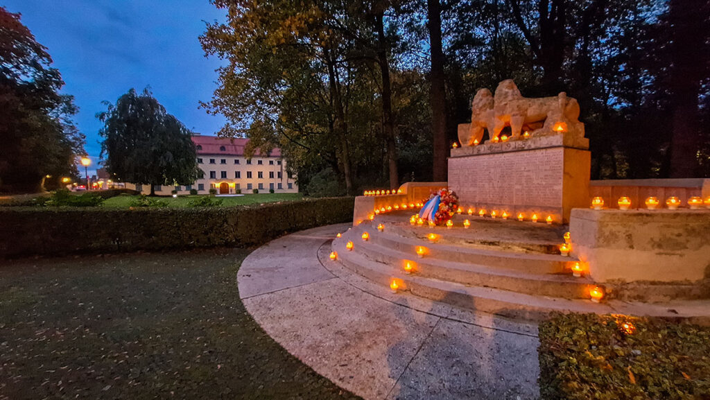 Das denkmalgeschützte Kriegerdenkmal an der Schloßstraße in Ismaning erinnerte zunächst an die 100 Männer aus der Gemeinde Ismaning, die im Ersten Weltkrieg fielen.