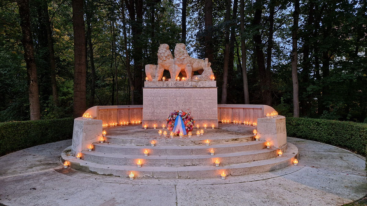 Unweit dieser Stelle starben am 23. August 1918 durch Absturz mit dem Flugzeug Leutnant der Reserve Georg Joseph Kuhner und Feldwebel Ulrich Georg Frey.
