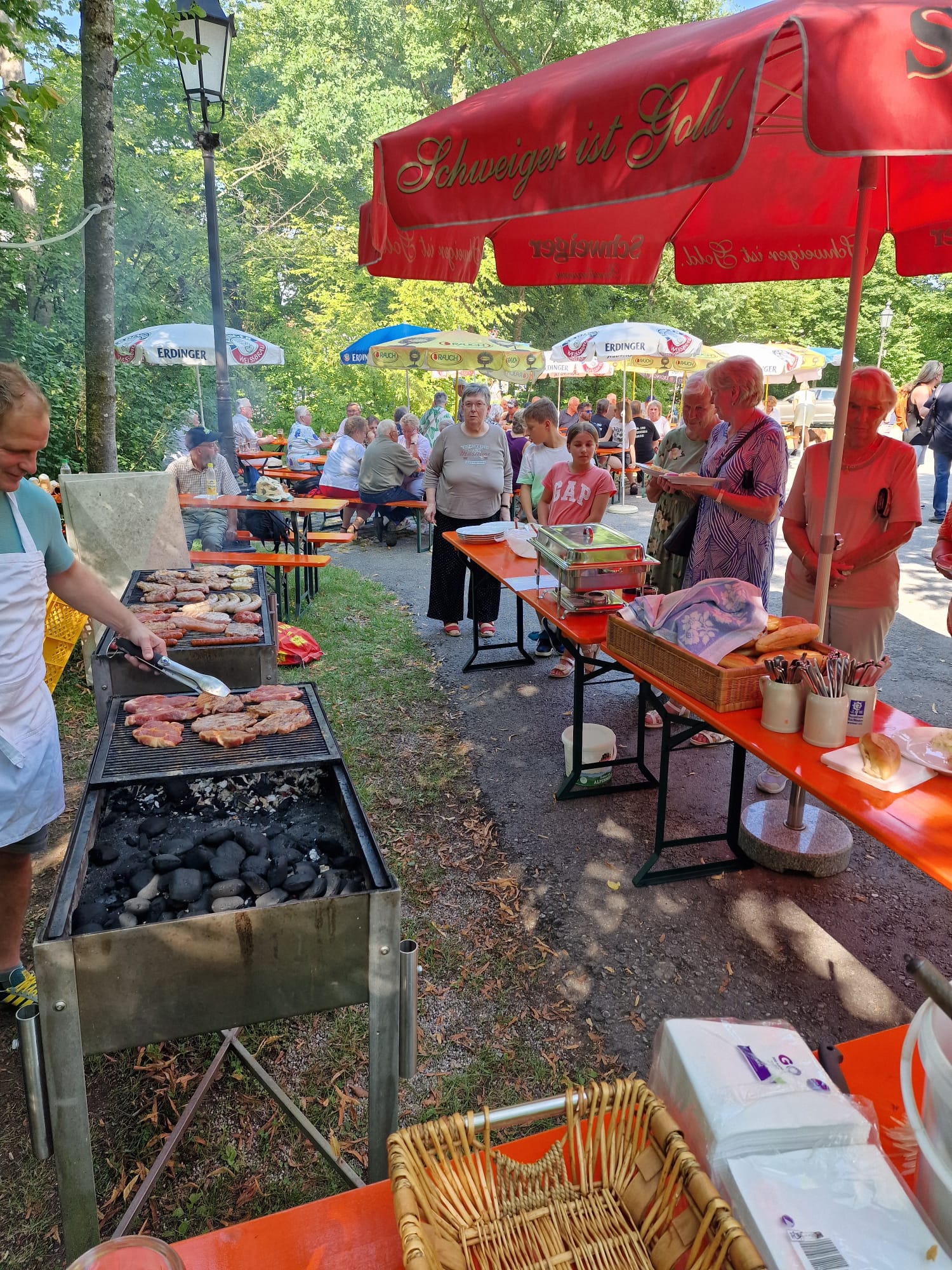Grillfleisch, Würste und Kartoffel und Krautsalat fanden reißend Absatz.