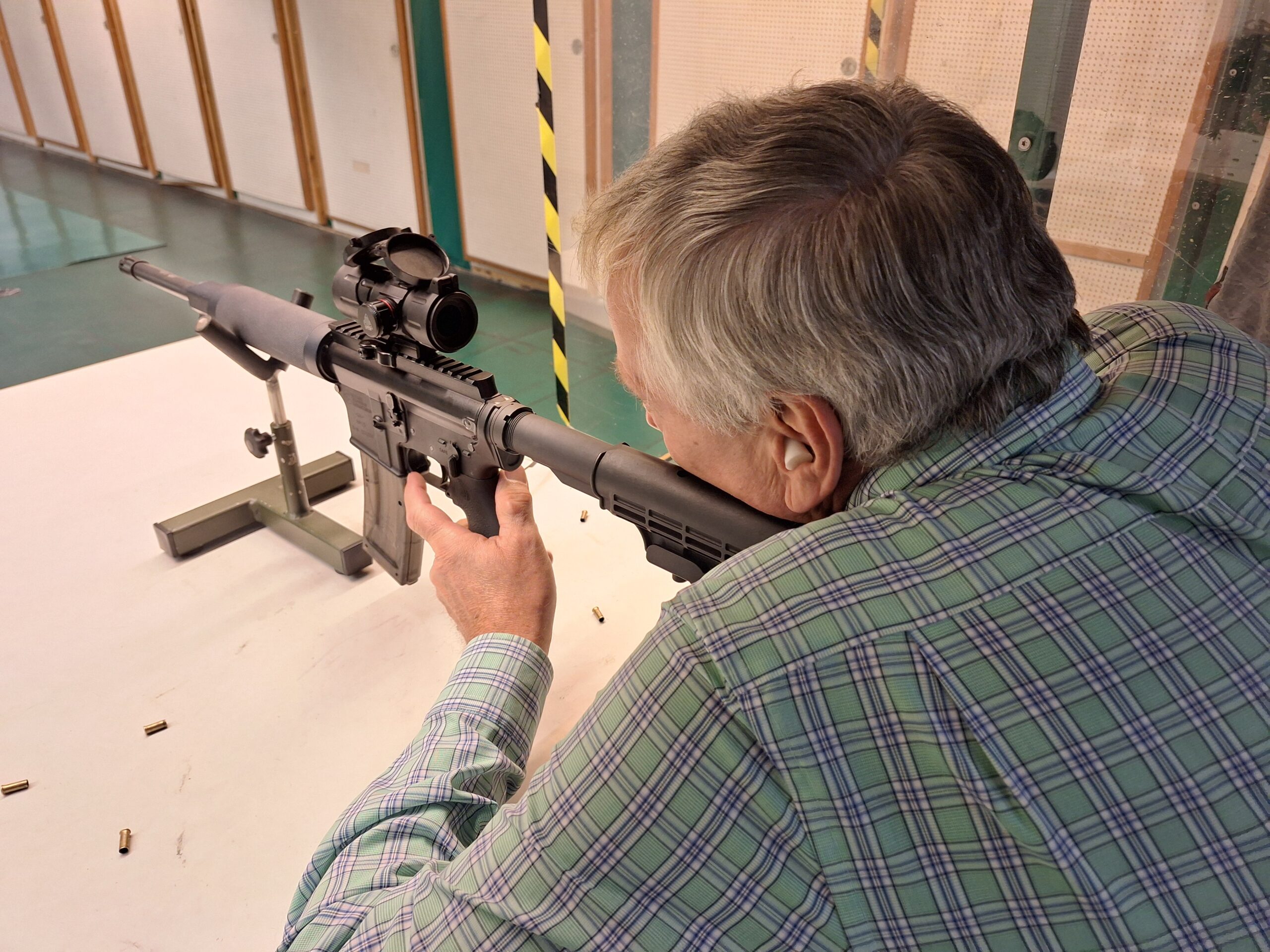 Nach der ersten Einweisung zur Handhabung und der Funktion, wurde zunächst mit dem standardmäßig angebrachten Hilfsvisier geschossen.