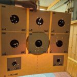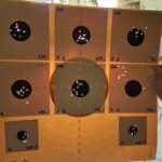 Mit sechs Schützen haben wir diesmal zwei Scheiben für jeden Schützen präpariert, um die Treffer besser zu erkennen. Also jeweils 10 Schuß auf eine Scheibe.
